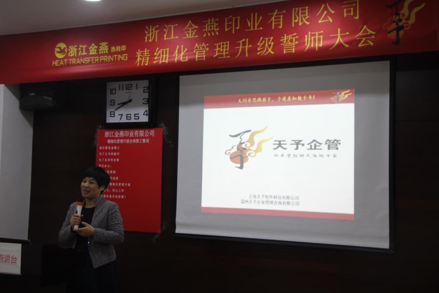 2017年12月7日,浙江金燕印业有限公司朱余品总经理携手上海(温州)天予企业管理咨询有限公司专家组,启动了管理升级誓师大会。他们带领着金燕全体员工召开了一场属于浙江金燕的“十九大”。